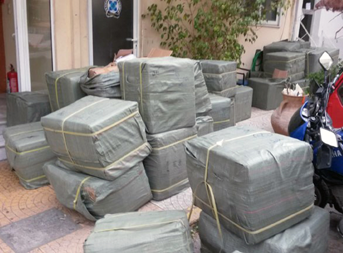 Ειδικότερα, αστυνομικοί εντόπισαν τους δύο άνδρες να επιβαίνουν σε αυτοκίνητο και να μεταβαίνουν σε αποθήκη, από την οποία μεταφόρτωσαν στο όχημα διάφορα κιβώτια.