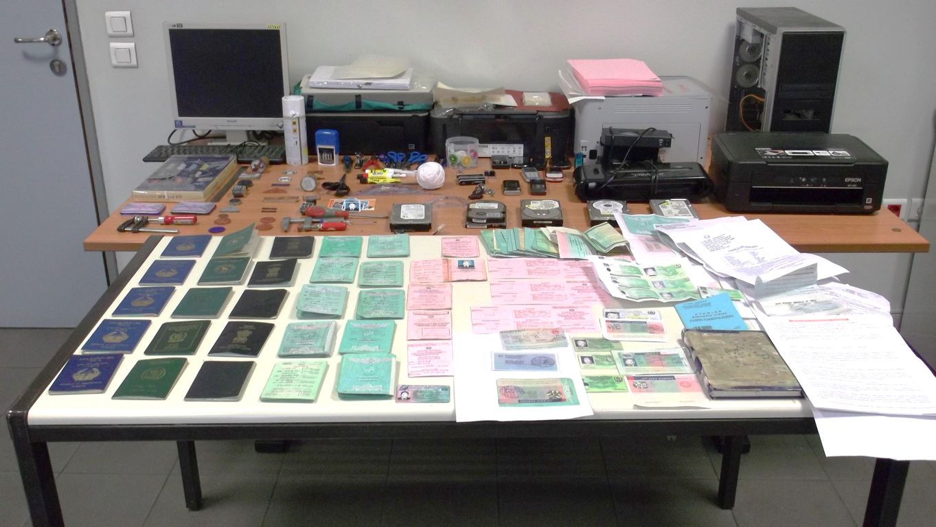 Σε εργαστήριο που είχαν εγκαταστήσει στην οικία του 24χρονου στο Περιστέρι, κατασκεύαζαν πλαστά ταξιδιωτικά έγγραφα με τα οποία προμήθευαν αλλοδαπούς, έναντι 500-600 ευρώ, προκειμένου να διευκολύνουν την παράνομη τακτοποίησή τους στη χώρα μας.
