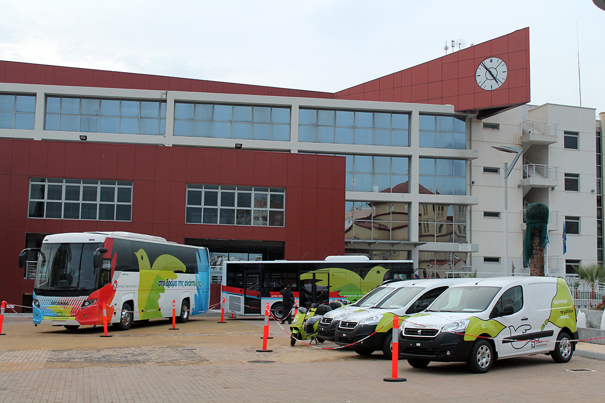 Μια άμεση παρουσίαση των νέων οχημάτων που απέκτησε ο Δήμος Περιστερίου αποφάσισε η Διοίκηση όπως μπορεί να καταλάβει κάποιος που περνάει από την πλατεία του Δημαρχείου στο Περιστέρι.