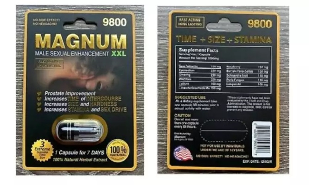 Το συμπλήρωμα διατροφής ονομάζεται Magnum XXL 9800. Τον ΕΟΦ ενημέρωσε η αμερικανική Υπηρεσία Τροφίμων & Φαρμάκων (FDA), καθώς τη σιλδεναφίλη απεκάλυψαν εργαστηριακοί έλεγχοι.