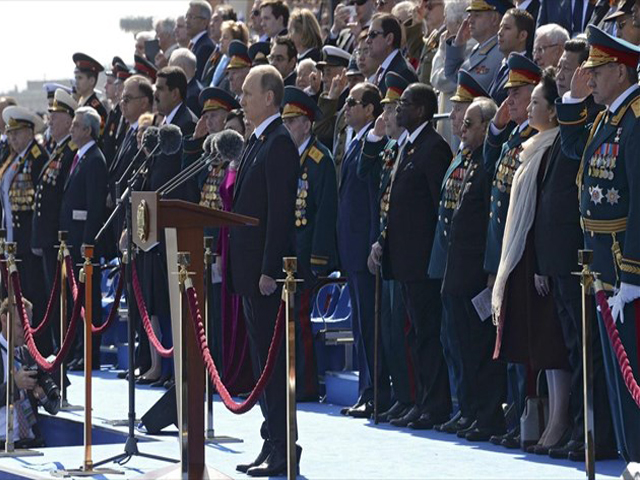 Στη Μόσχα ο Πούτιν υποδέχθηκε τους ηγέτες αναδυόμενων δυνάμεων, όπως τον πρόεδρο της Κίνας Σι Τζινπίνγκ και τον πρόεδρο της Ινδίας Πρανάμπ Μουχέρτζι, τον Αιγύπτιο ομόλογό του Άμπντελ Φάταχ αλ-Σίσι, τον κουβανό πρόεδρο Ραουλ Κάστρο, καθώς και τον γενικό γραμματέα του ΟΗΕ Μπαν Κι-Μουν.