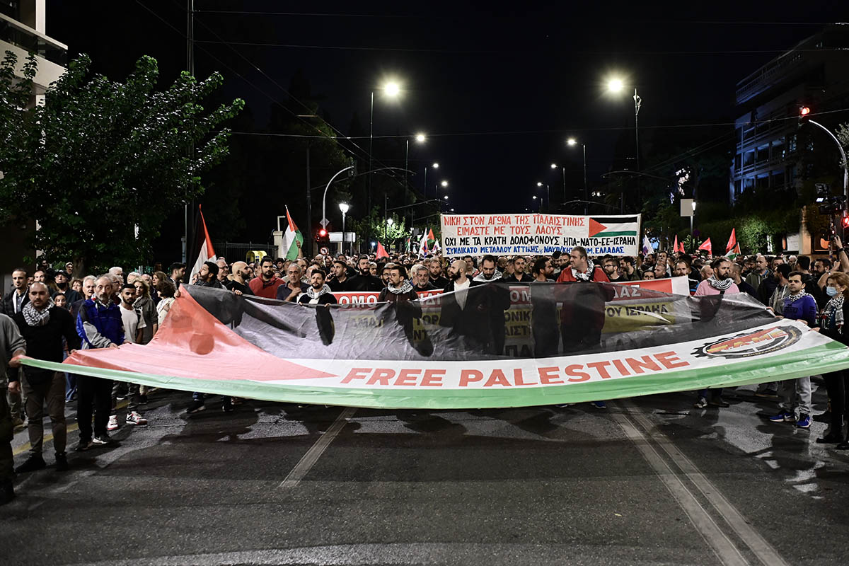 Πολλοί διαδηλωτές παρέμειναν για αρκετή ώρα στην περιοχή φωνάζοντας συνθήματα με κυρίαρχο το «Λευτεριά στην Παλαιστίνη».