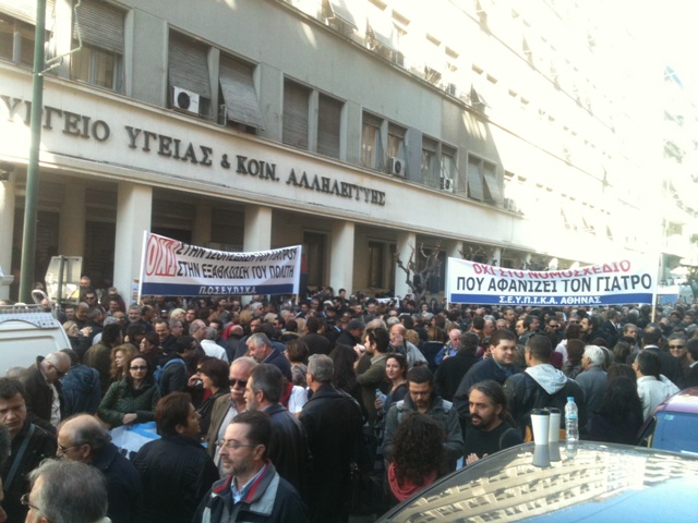 Οι γιατροί μετά από μια μαχητική συγκέντρωση ζήτησαν να συναντηθούν με τον υπουργό Υγείας, κάτι το οποίο δεν κατέστη δυνατό και στη συνέχεια απαίτησαν να δουν κάποιον από τους γενικούς γραμματείς.