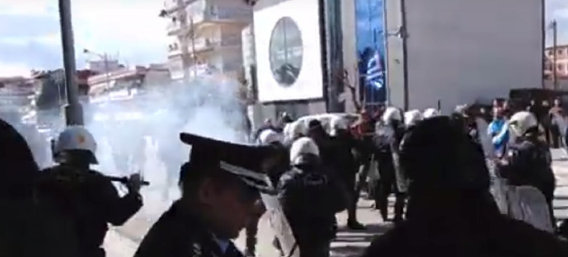 Οι διαδηλωτές που συγκεντρώθηκαν, λόγω των αστυνομικών μέτρων, αρκετά μακριά από τις εγκαταστάσεις της Σχολής, φωνάζοντας συνθήματα για τη Μακεδονία, σε κάποια στιγμή επιχείρησαν να πλησιάσουν περισσότερο στη Σχολή Πυροσβεστικής, όμως απωθήθηκαν, με τη χρήση χημικών, από τις αστυνομικές δυνάμεις.