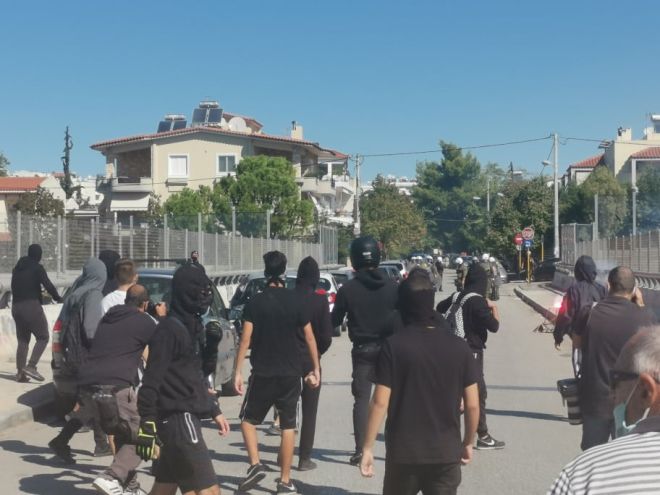 Περίπου 40 άτομα ξεκίνησαν να πετούν πέτρες και φωτοβολίδες μέσα στον χώρο του υπουργείου. Η υπολοιπη συγκέντρωση που είναι μαζική, στράφηκε αμέσως ενάντια στα άτομα αυτά και τους φώναζαν να φύγουν γιατί καταστρέφουν τη διαμαρτυρία.