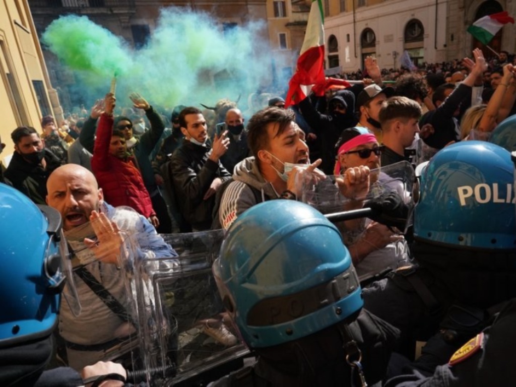 Εστιάτορες και ελεύθεροι επαγγελματίες συγκεντρώθηκαν χθες έξω από την βουλή στη Ρώμη διαμαρτυρόμενοι μέχρι το βράδυ κατά των παρατεταμένων απαγορεύσεων και περιορισμών λόγω του κορωνοϊού. Είναι η πρώτη φορά που ξεσπά κοινωνική ένταση από τότε που ο Μάριο Ντράγκι έγινε πρωθυπουργός.
