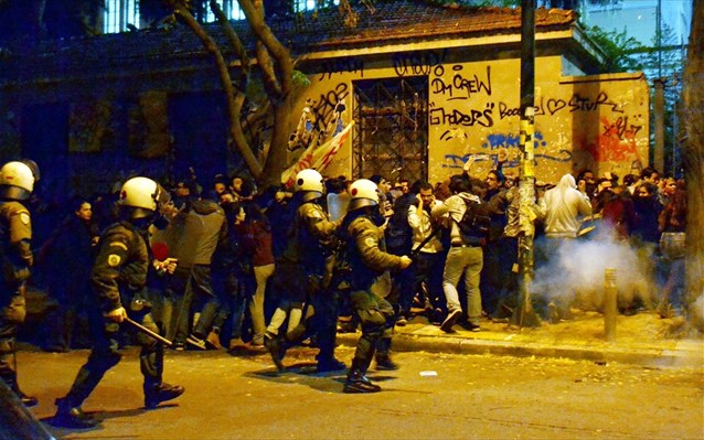 Τα ΜΑΤ έκαναν χρήση χημικών καθώς και ρίψη χειροβομβίδων κρότου λάμψης.