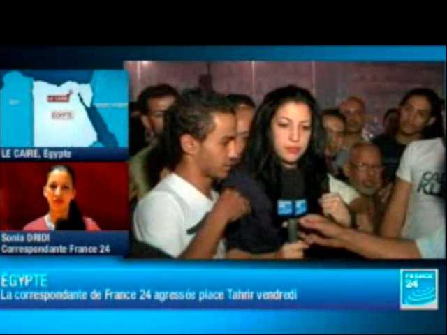 Η Γαλλίδα ρεπόρτερ του France 24 κατά την διάρκεια κάλυψης μιας διαδήλωση στην πλατεία Ταχρίρ, βρέθηκε προ εκπλήξεως όταν ξαφνικά άρχισαν να περικυκλώνουν εκείνη και τον κάμεραμαν δεκάδες συγκεντρωμένοι άνδρες.