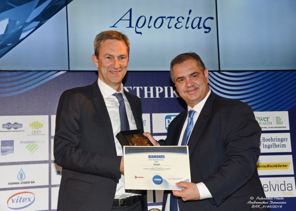 Το κορυφαίο βραβείο του φόρουμ επιχειρηματικής αριστείας Diamonds of the Greek Economy απέσπασε ο ΟΠΑΠ, σε αναγνώριση της επιχειρηματικής στρατηγικής, των επενδύσεων και των επιτευγμάτων της εταιρείας.