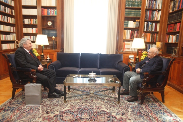 Από τον Πρόεδρο της Δημοκρατίας, Κάρολο Παπούλια, έγιναν το μεσημέρι δεκτοί ο μουσικοσυνθέτης Μίκης Θεοδωράκης και ο συνταγματολόγος Γιώργος Κασιμάτης, προκειμένου να υποβάλουν διάβημα κατά του μνημονίου και να συζητήσουν την πρότασή τους για έξοδο της Ελλάδας από την οικονομική κρίση.
