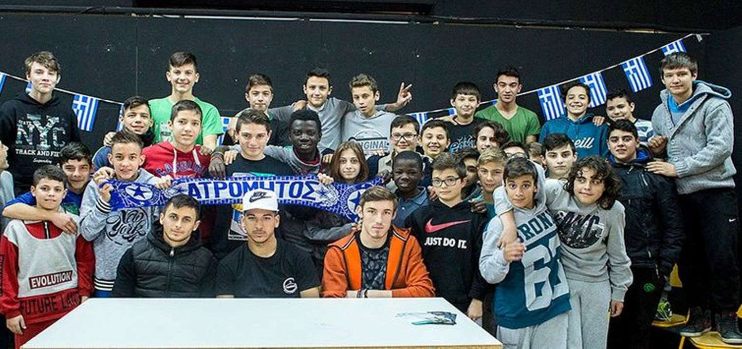 Οι τρεις ποδοσφαιριστές μοίρασαν εισιτήρια για τον αγώνα με την Βέροια και υπέγραψαν αυτόγραφα στους μαθητές.