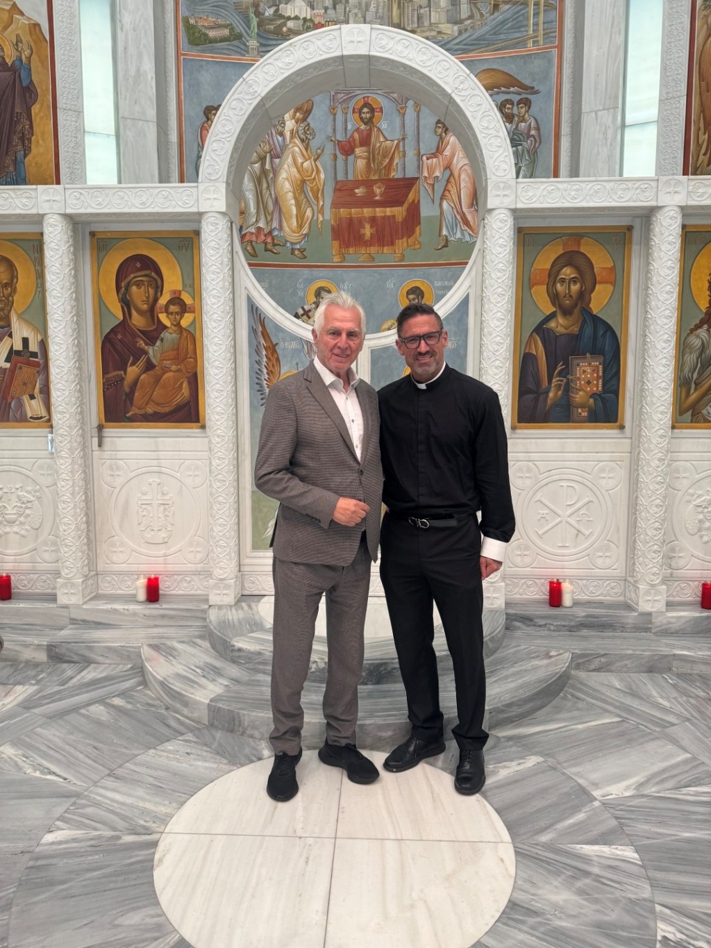 Ιδιαίτερα συγκινητική ήταν η παρουσία του στη Θεία Λειτουργία στον Ιερό Ναό Αγίου Νικολάου στο «Σημείο Μηδέν», όπου συνομίλησε με τον πατέρα Ανδρέα για τον ρόλο της Εκκλησίας στην ομογένεια.