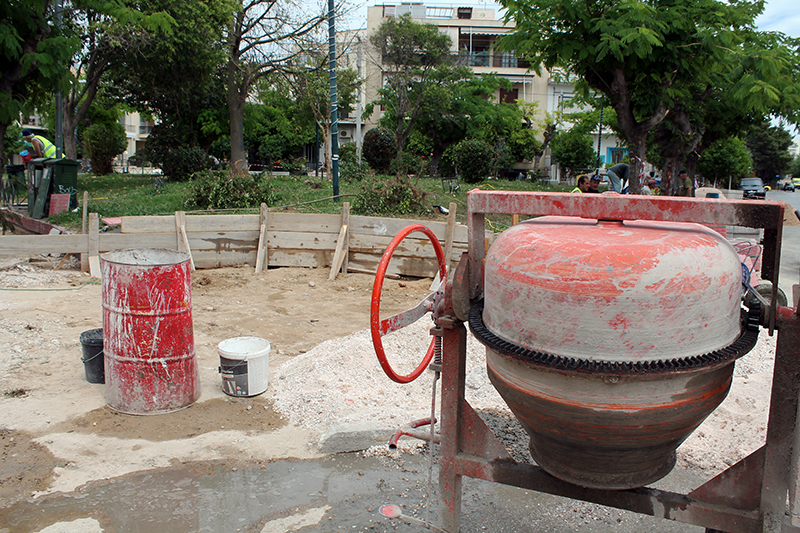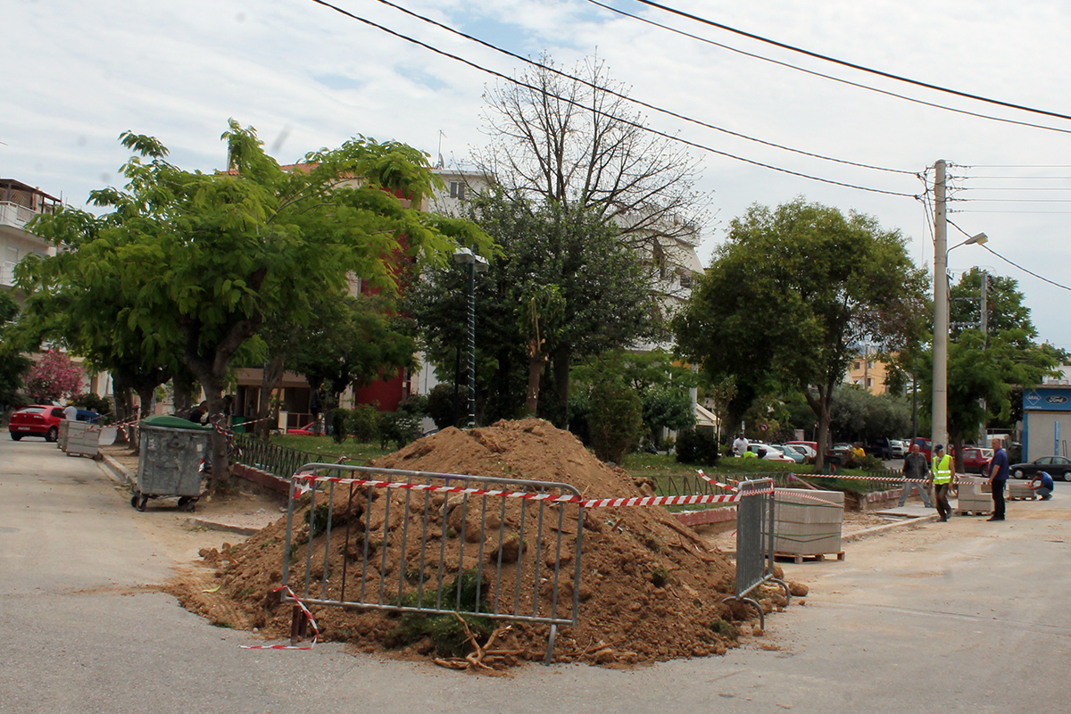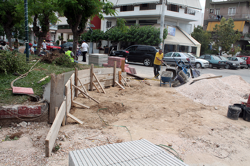 Τις τελευταίες δύο μέρες οι εργασίες έχουν επικεντρωθεί στην πλατεία επί των οδών Δεληγιάννη και Κύπρου στο Μπουρνάζι.