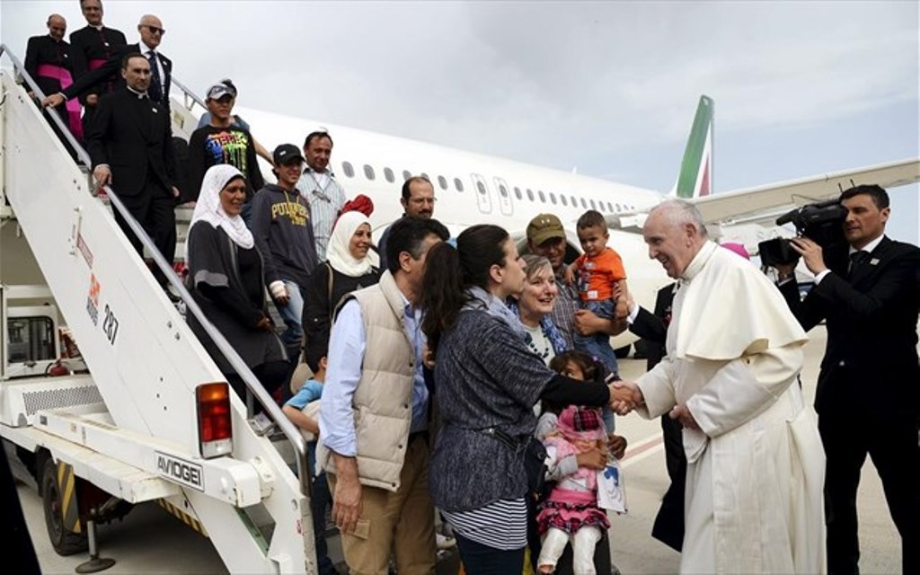 Με δώδεκα πρόσφυγες επέστρεψε πριν λίγο στο αεροδρόμιο της Ρώμης Τσαμπίνο, ο πάπας Φραγκίσκος. Είναι όλοι τους μουσουλμάνοι και πρόκειται να διαμείνουν σε κέντρο φιλοξενίας της καθολικής κοινότητας του Αγίου Αιγιδίου. Πρόκειται για τρεις οικογένειες -ανάμεσά τους και έξι ανήλικα- που είχαν φτάσει στην Λέσβο πριν την υπογραφή της συμφωνίας του περασμένου Μαρτίου, μεταξύ Ευρωπαϊκής Ένωσης και Τουρκίας.