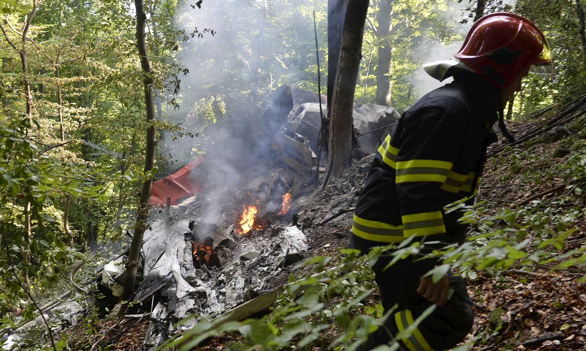 Φωτοειδησεογράφος του πρακτορείου Reuters ανέφερε ότι είδε το ένα από τα αεροσκάφη να φλέγεται μετά την πτώση του σε δασωμένο λόφο κοντά στο χωριό Τσέρβενι Κάμεν, 150 βορείως της πρωτεύουσας Μπρατισλάβα.