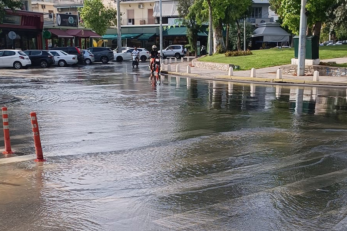 Την ώρα που η θερμοκρασία ξεπέρασε τους 42 βαθμούς Κελσίου στο Περιστέρι, ένας αγωγός νερού έσπασε με αποτέλεσμα να πλημμυρίσουν όλα.