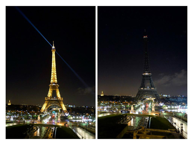 Συγκλονιστική ήταν η στιγμή που τα φώτα στον πύργο του Άιφελ, το σύμβολο του Παρισιού, της Πόλης του φωτός, έσβησαν το βράδυ της Πέμπτης σε ένδειξη πένθους για τα 12 θύματα της τρομοκρατικής επίθεσης στην σατιρική εφημερίδα Charlie Ebdo.