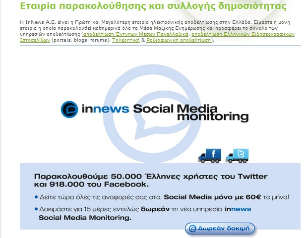 Η Ελληνική εταιρεία αποδελτίωσης διαφημίζει ότι έχει «φακελώσει» όλους τους Έλληνες χρήστες του facebook και του Twitter και μάλιστα πουλάει τα δεδομένα τους σε όποιον ενδιαφέρεται!