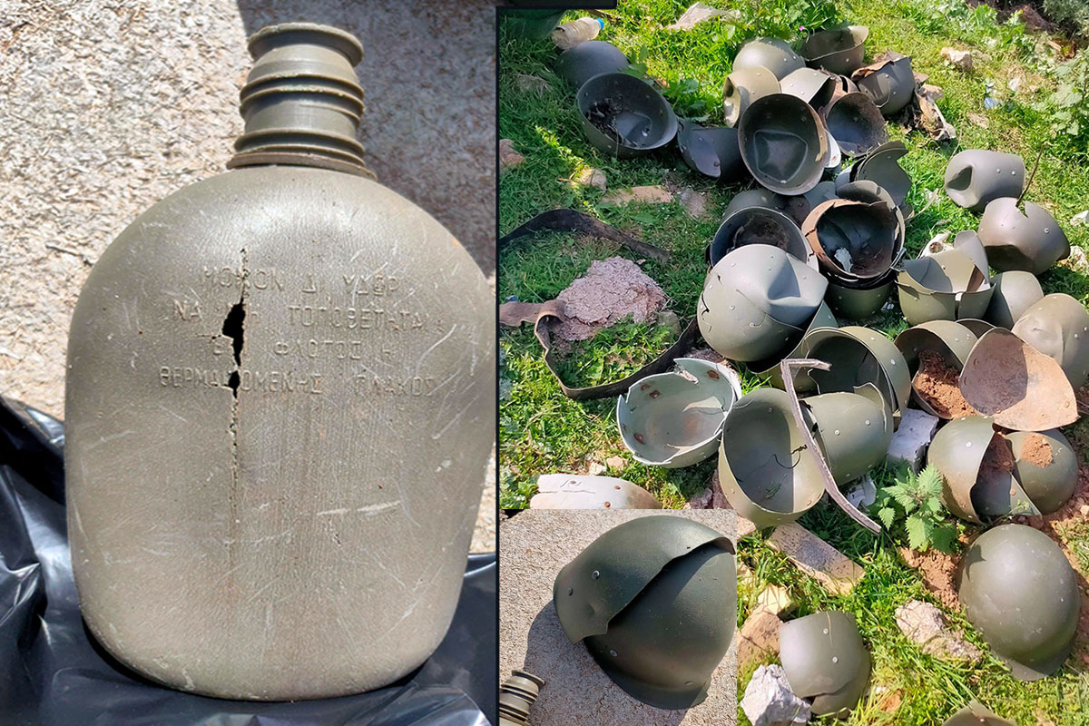 Συγκεκριμένα οι εθελοντές μάζεψαν 4200 λίτρα σκουπιδιών μαζεύοντας οικιακά απορρίμματα, στρατιωτικά κράνη και παγούρια, λεκάνη τουαλέτας, δεκάδες λάστιχα και άλλα πολλά.