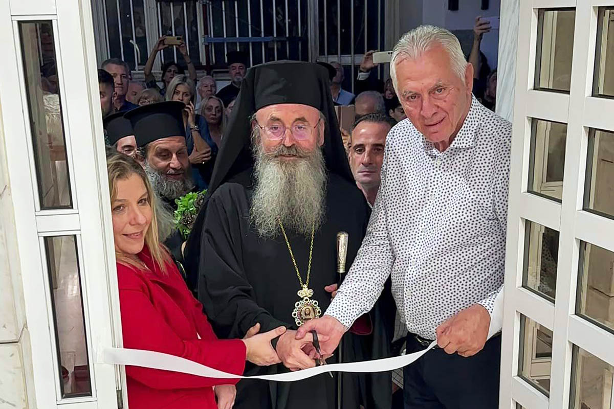 Μαζί με τον Μητροπολίτη την κορδέλα των εγκαινίων έκοψαν ο Δήμαρχος Περιστερίου, Ανδρέας Παχατουρίδης και η Βουλευτής Δυτικής Αθήνας της Νέας Δημοκρατίας, Μαρία Συρεγγέλα.