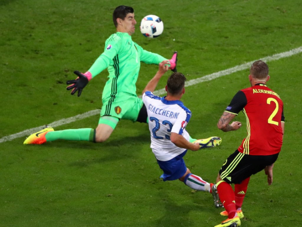 Στο 32ο λεπτό, λοιπόν, ο Τζακερίνι άνοιξε το σκορ με πολύ όμορφο κατέβασμα της μπάλας και άψογο πλασέ απέναντι στον Κουρτουά, σημειώνοντας το 4ο τέρμα του στην Εθνική Ιταλίας, αλλά το «μισό γκολ» ανήκε στον Μπονούτσι, που έβγαλε εκπληκτική μπαλιά στην πλάτη της βελγικής άμυνας.