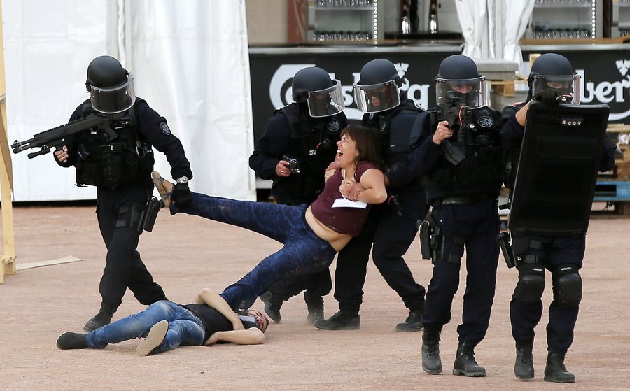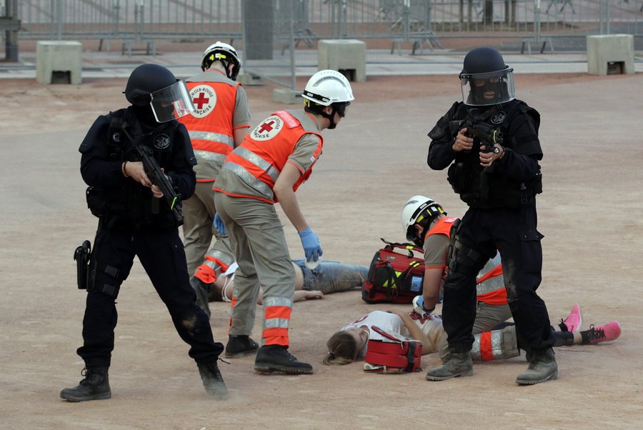 Συγκλονιστικές ήταν οι εικόνες των ασκήσεων προσομοίωσης τρομοκρατικής επίθεσης, στη Λυών της Γαλλίας, την Τετάρτη 8 Ιουνίου. Σύμφωνα με το σενάριο της άσκησης, «τρομοκράτες» έκαναν επίθεση με βόμβα στην Fan Zone, που βρίσκεται στο κέντρο της Λυών, ενώ παράλληλα έδρασαν και ένοπλοι σύντροφοί τους. Μετά την «επίθεση» οι ειδικές δυνάμεις απέκλεισαν άμεσα τον χώρο, όπου είχαν συγκεντρωθεί φίλαθλοι για να παρακολουθήσουν από τις γιγαντοοθόνες τα παιχνίδια, εξουδετέρωσαν τους ένοπλους «τρομοκράτες» και ασθενοφόρα και πυροσβέστες για να παράσχουν τις πρώτες βοήθειες σε όσους είχαν τραυματιστεί.