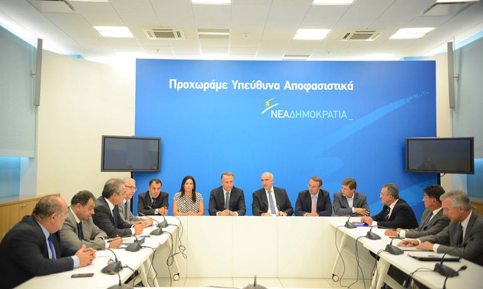 Συνάντηση με εκπροσώπους των παραγωγικών φορέων είχε σήμερα στα κεντρικά γραφεία της Νέας Δημοκρατίας ο πρόεδρος του κόμματος, Ευάγγελος Μεϊμαράκης.