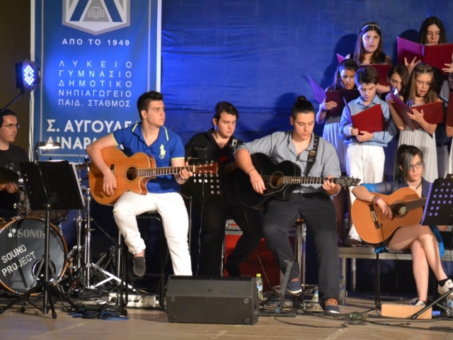 Τα εκπαιδευτήρια Αυγουλέα-Λιναρδάτου, την Παρασκευή 27 Ιουνίου, παρουσίασαν στο ανοιχτό θέατρο «Αλέξης Μινωτής» μια μεγάλη μουσική παράσταση, ένα οδοιπορικό στον εμπνευσμένο ελληνικό στίχο και μουσική, με τίτλο «Τι είναι αυτό που μας ενώνει».