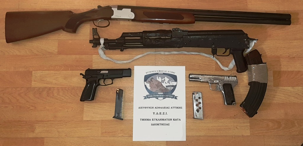 Από τις έρευνες που ακολούθησαν, εντοπίστηκαν και κατασχέθηκαν δύο πιστόλια, καθώς και καλάσνικοφ με δύο γεμιστήρες πλήρεις φυσιγγίων.