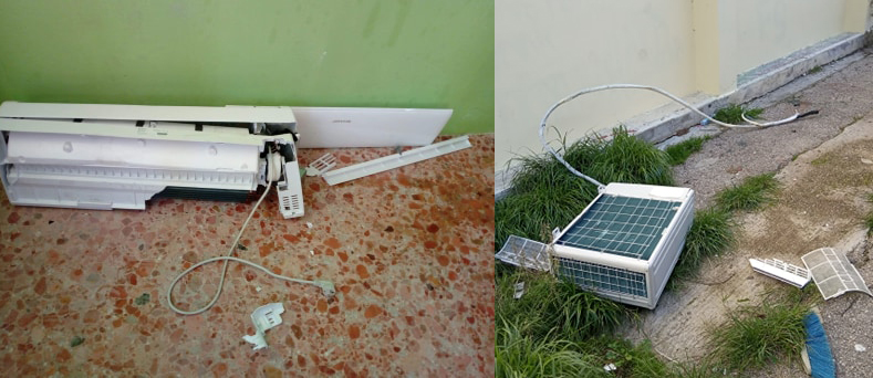 Σύμφωνα με την καταγγελία άγνωστοί εισέβαλαν στο σχολείο τις μέρες που ήταν κλειστό και κατέστρεψαν σε αίθουσα τόσο την εσωτερική όσο και την εξωτερική μονάδα κλιματισμού.