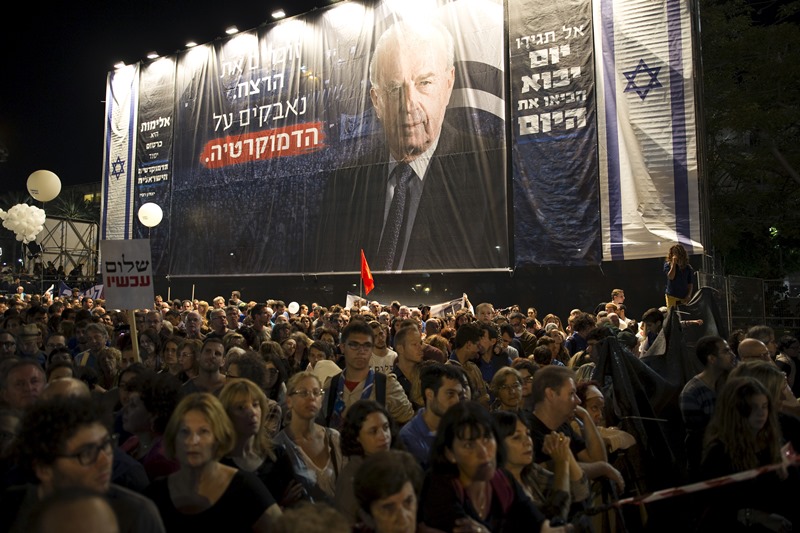 Δεκάδες χιλιάδες Ισραηλινοί συγκεντρώθηκαν χθες στο Τελ Αβίβ, προκειμένου να αποτίσουν φόρο τιμής στον Γιτζάκ Ράμπιν, τον πρώην πρωθυπουργό του Ισραήλ που δολοφονήθηκε πριν από είκοσι χρόνια από έναν ακροδεξιό.