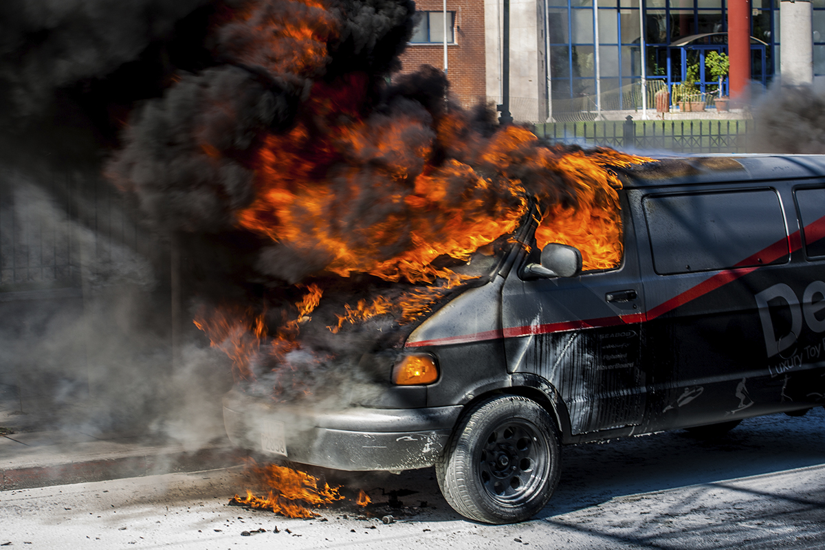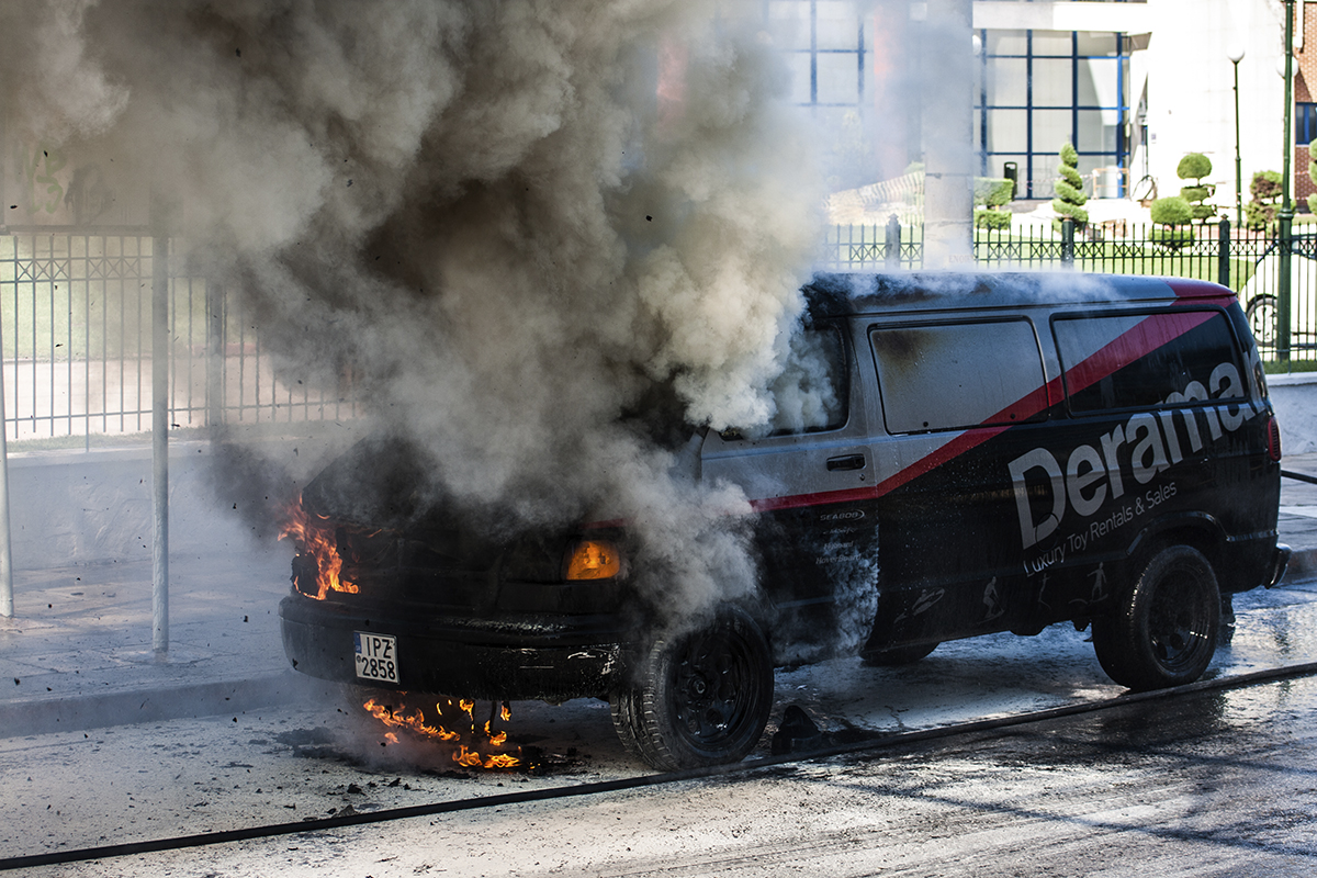 Φορτηγάκι τυλίχθηκε στις φλόγες με τον οδηγό του να προλαβαίνει την τελευταία στιγμή να βγει από το φλεγόμενο όχημα.