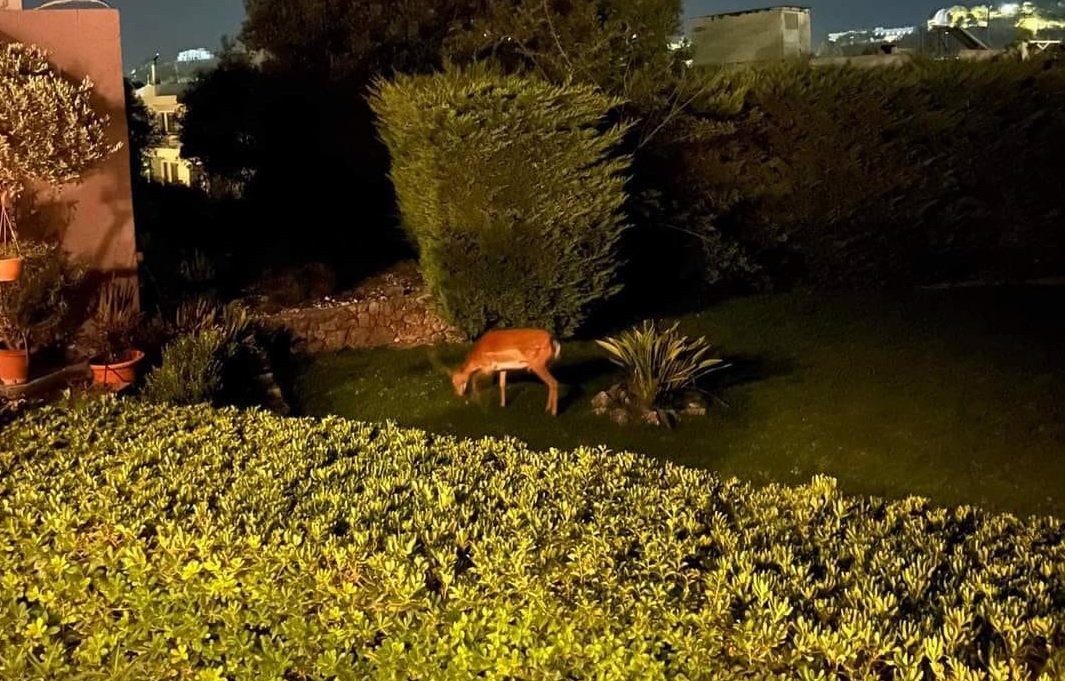 Μετά τις εικόνες από τα ελάφια που κείτονται νεκρά στις παρυφές δρόμων της Ρόδου που προκαλούν θλίψη, μία νέα εικόνα κάνει από το πρωί της Δευτέρας (24/07) τον γύρο του διαδικτύου, απεικονίζοντας ένα ελάφι το οποίο προς αναζήτηση νερού και τροφής έφτασε τα ξημερώματα μέχρι την αυλή ενός σπιτιού.