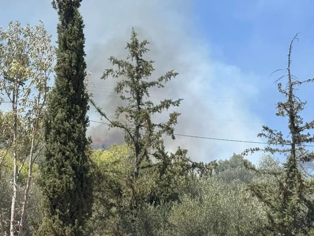 Η φωτιά έκαιγε χαμηλή βλάστηση στο βουνό πάνω από τα σπίτια στην περιοχή του προφήτη Ηλία.
