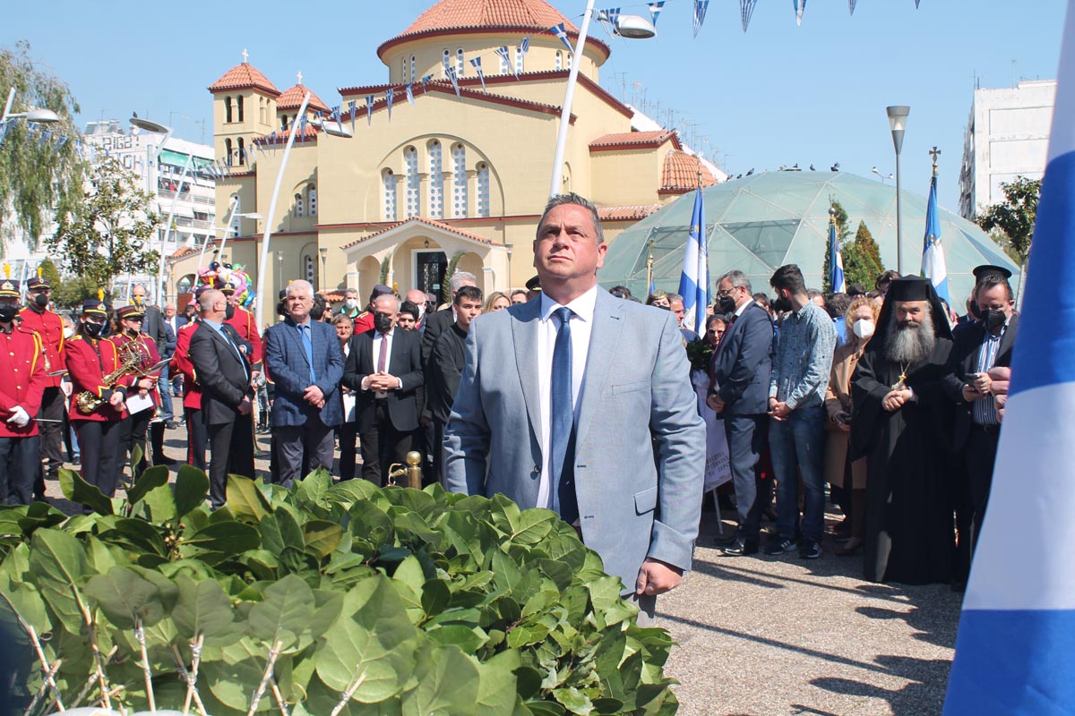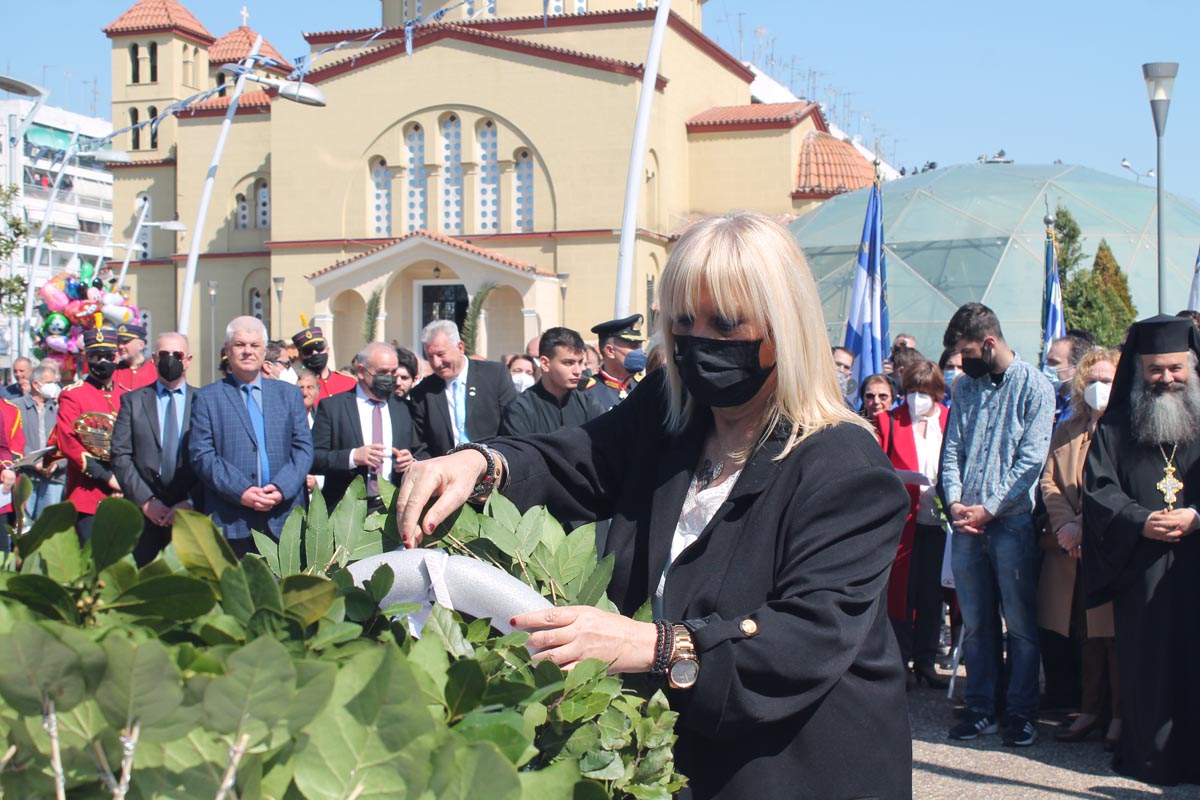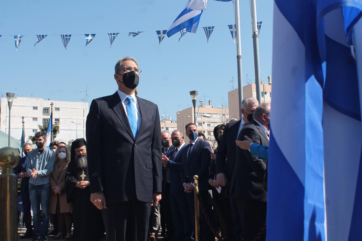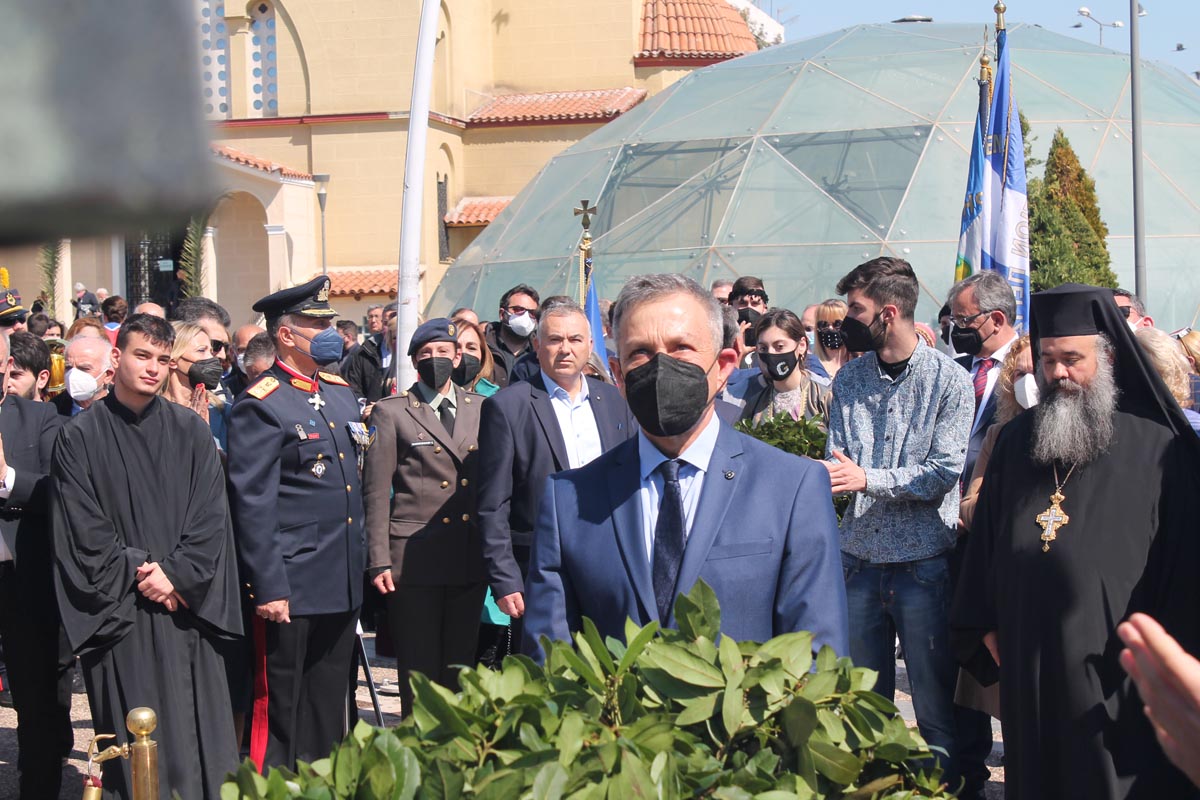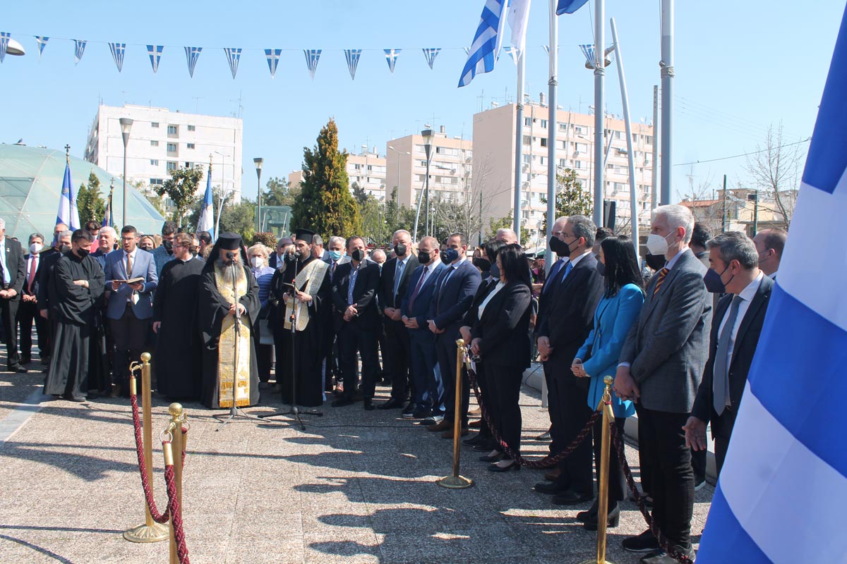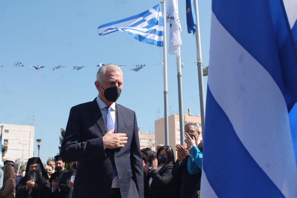 Στο Ηρώο της πλατείας Δημοκρατίας πραγματοποιήθηκε το πρωί της Παρασκευής 25 Μαρτίου 2022, η καθιερωμένη κατάθεση στεφάνων στο Περιστέρι.