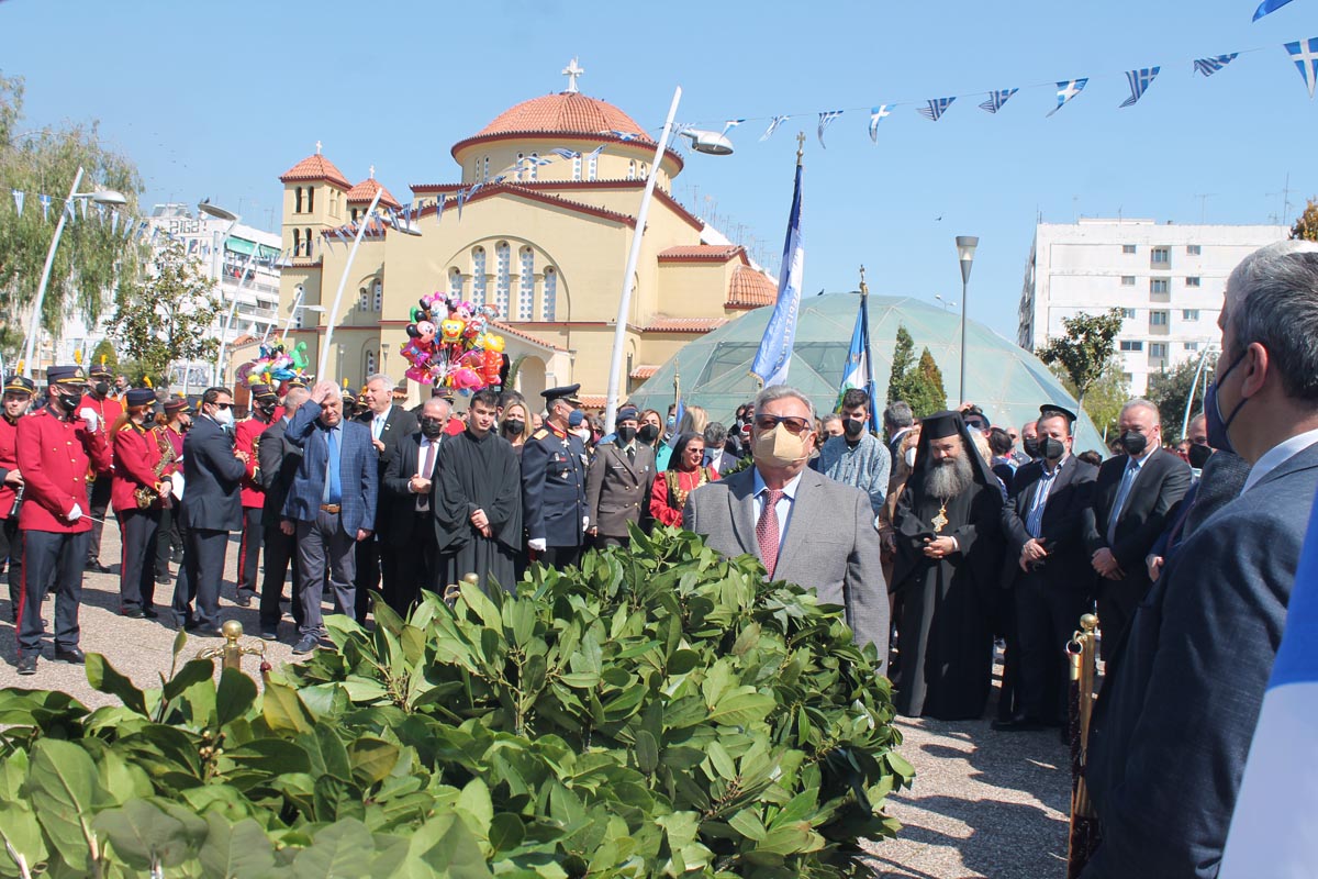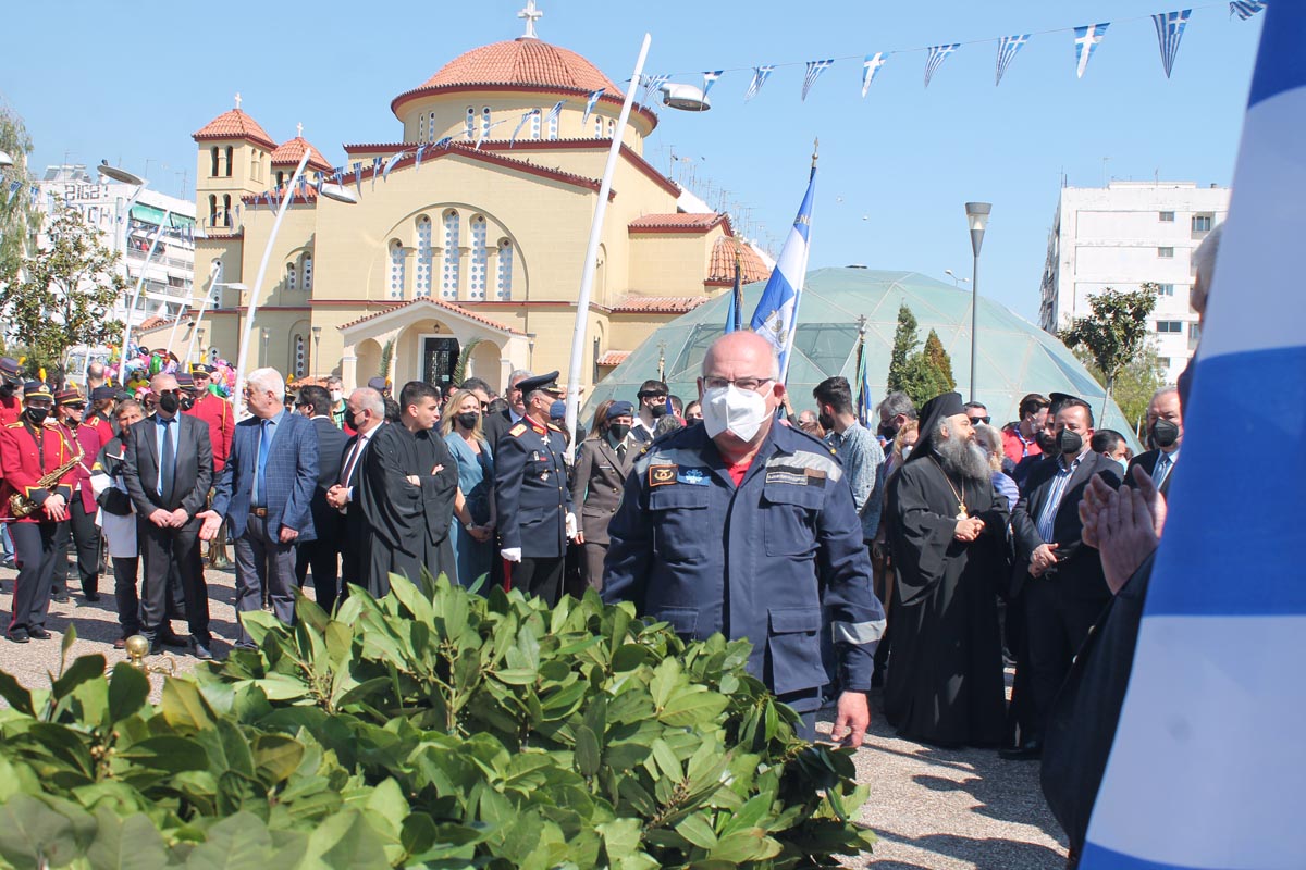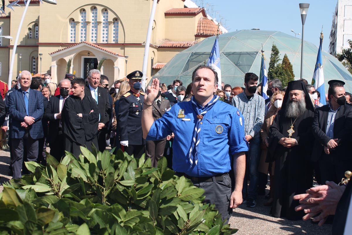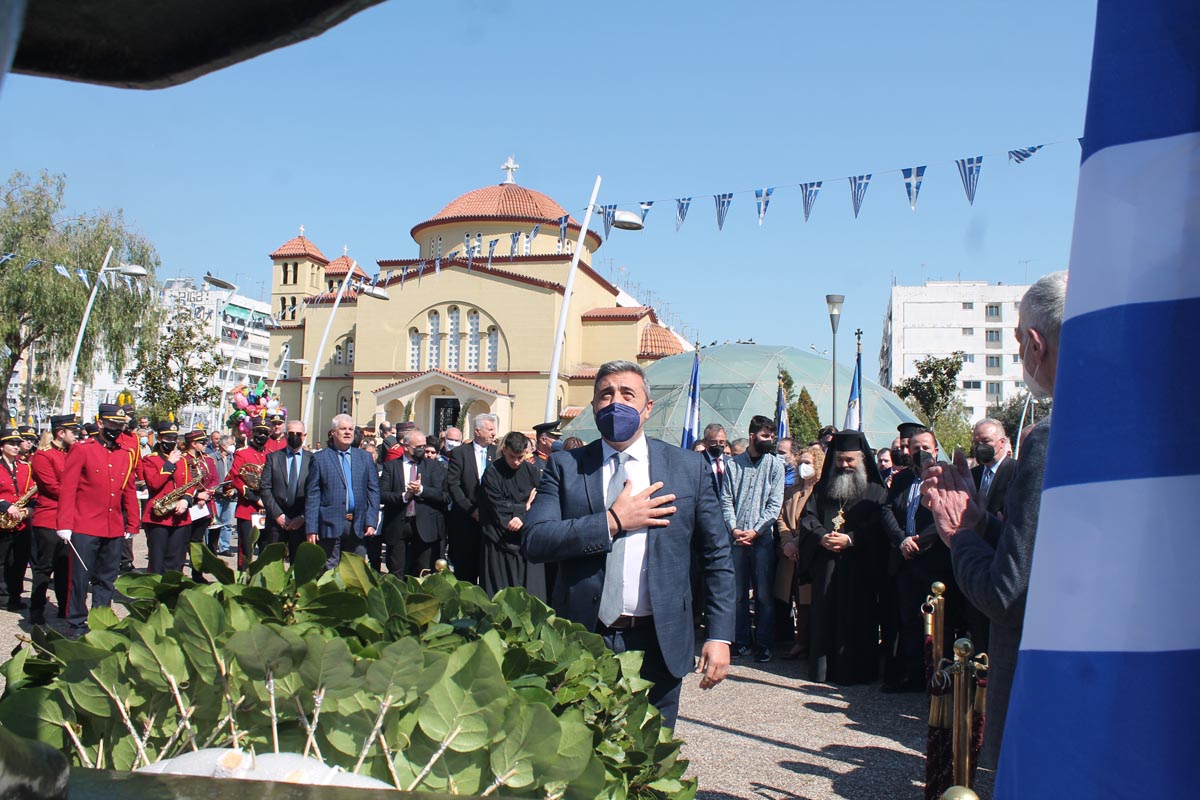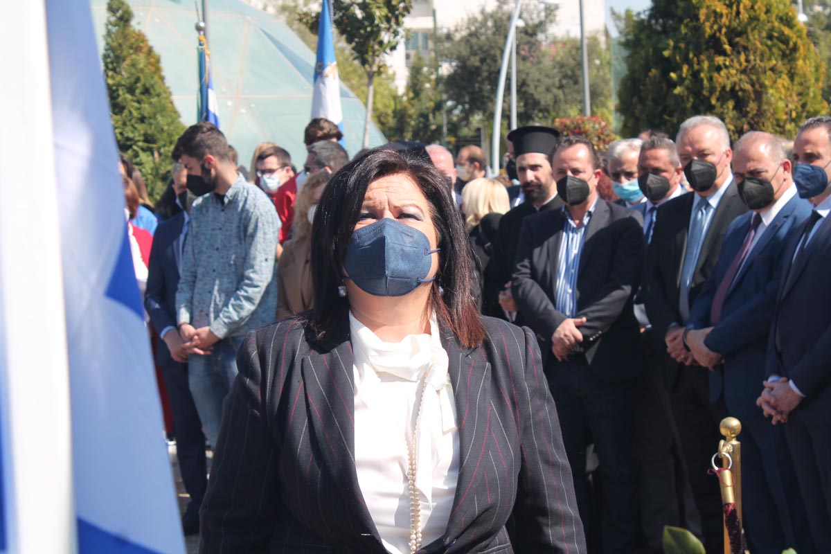 Στο Ηρώο της πλατείας Δημοκρατίας πραγματοποιήθηκε το πρωί της Παρασκευής 25 Μαρτίου 2022, η καθιερωμένη κατάθεση στεφάνων στο Περιστέρι.