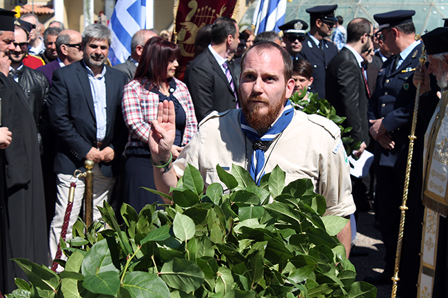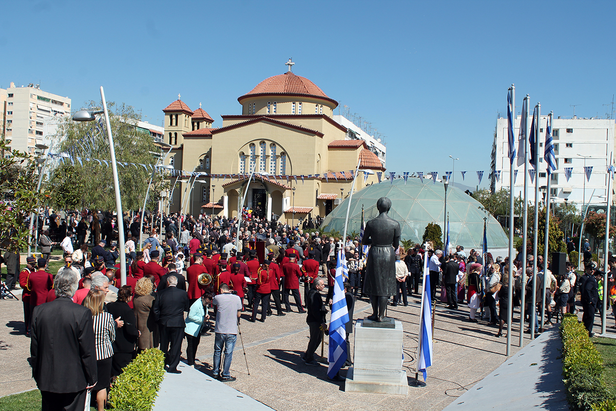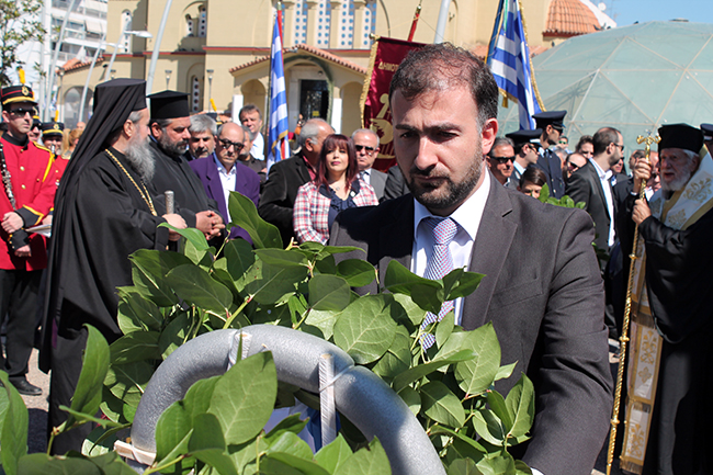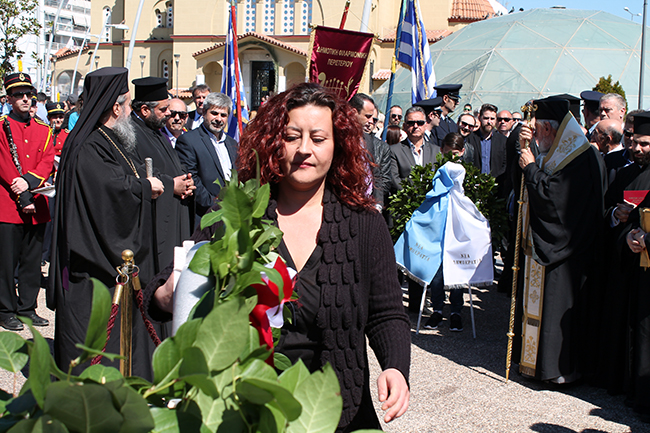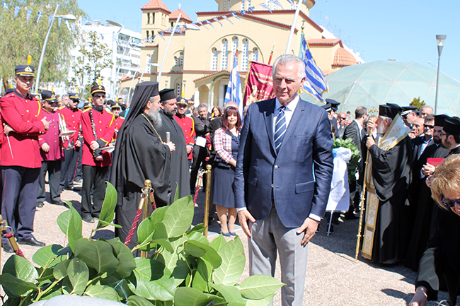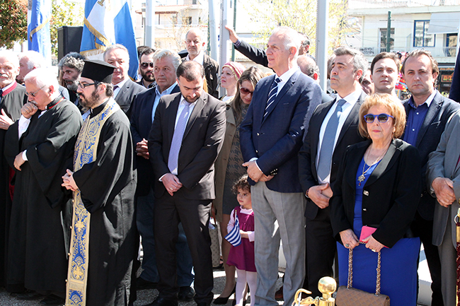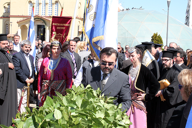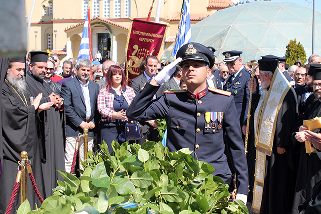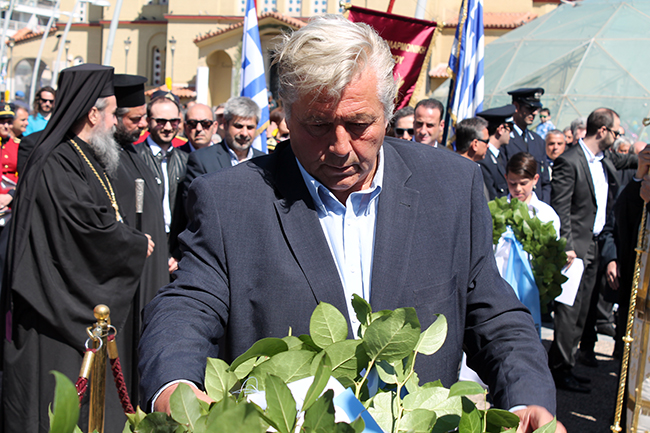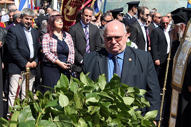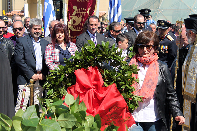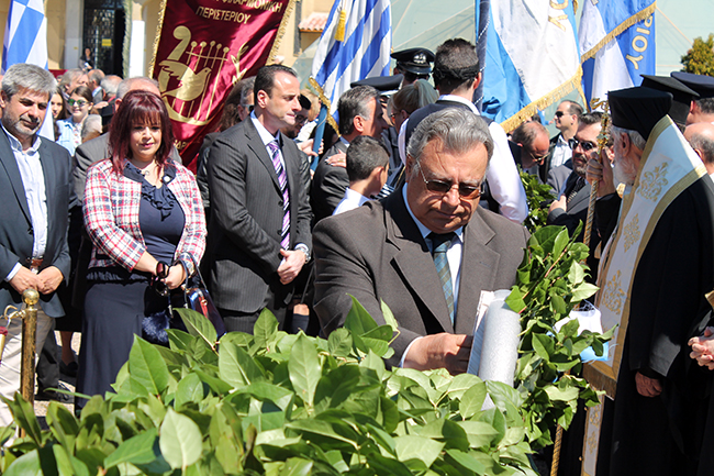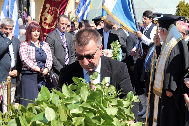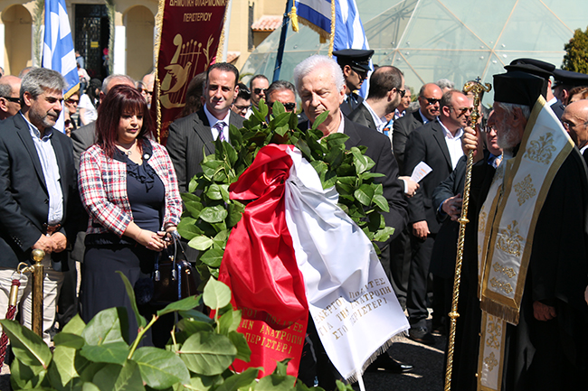 Η καθιερωμένη κατάθεση στεφάνων προηγήθηκε της παρέλασης στην Πλατεία Δημοκρατίας μπροστά από το Ηρώο το πρωί του Σαββάτου 25 Μαρτίου 2017.