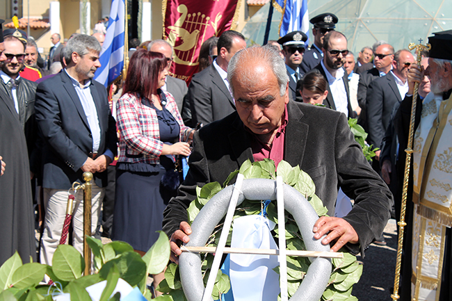 Με το πέρας της επιμνημόσυνης δέησης ξεκίνησε η κατάθεση στεφάνων από τον Δήμαρχο, τις δημοτικές παρατάξεις, τα πολιτικά κόμματα, τις ένοπλες δυνάμεις και τους τοπικούς συλλόγους.