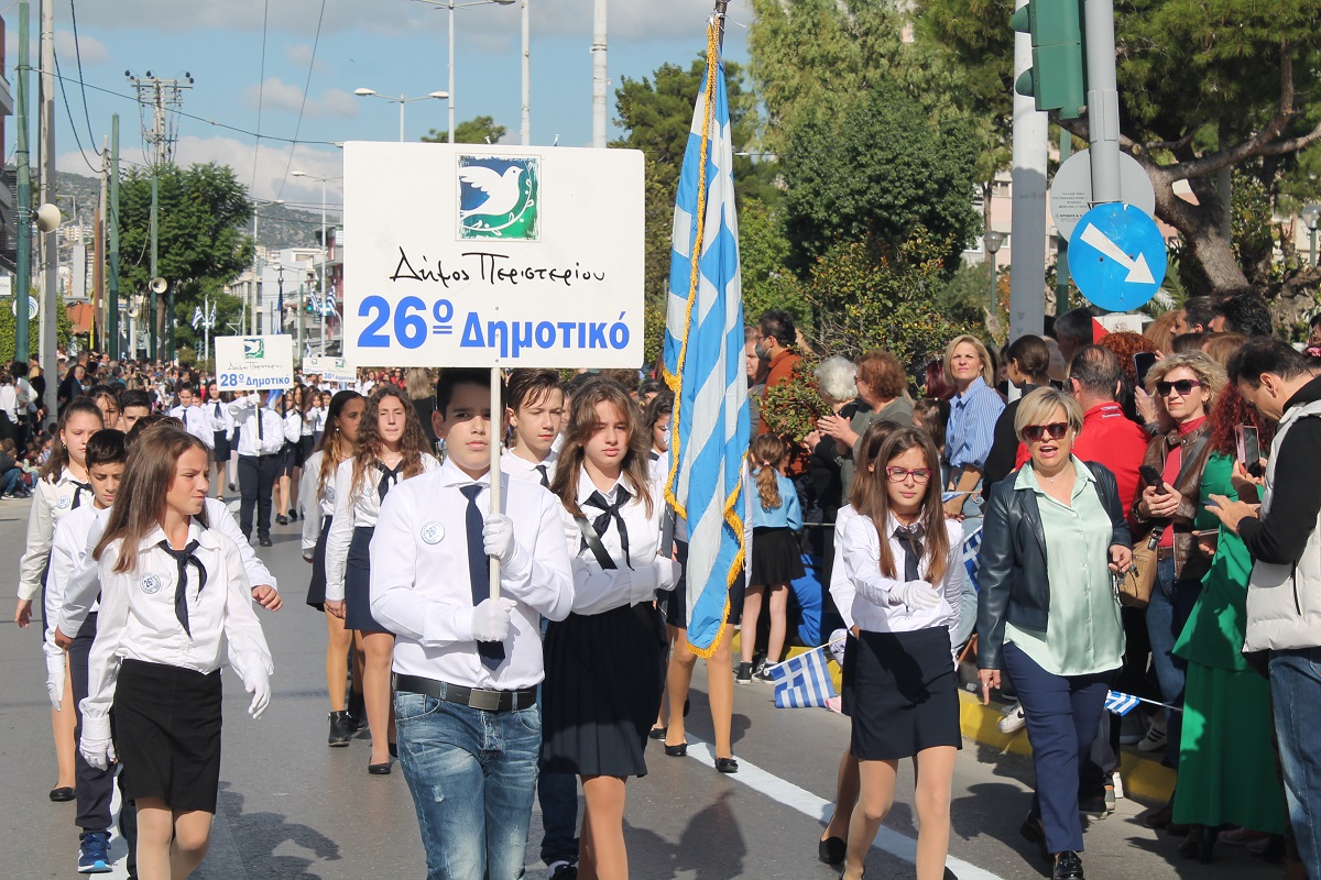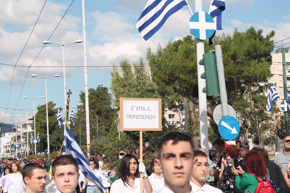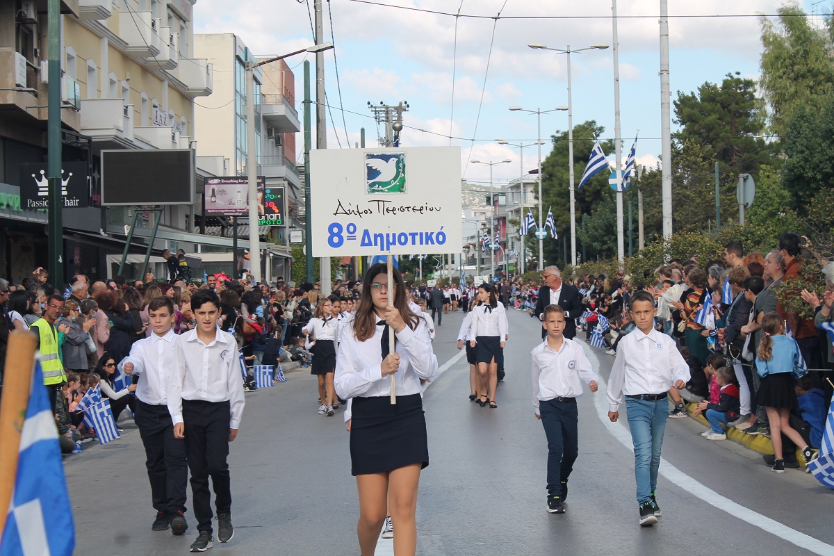 Με τη συμμετοχή εκατοντάδων παιδιών από σχολεία, συλλόγους και φορείς του Περιστερίου πραγματοποιήθηκε το πρωί η επετειακή παρέλαση της 28ης Οκτωβρίου.