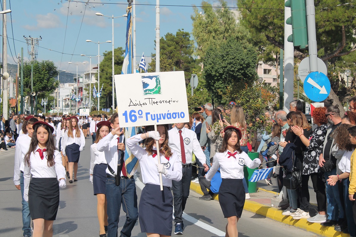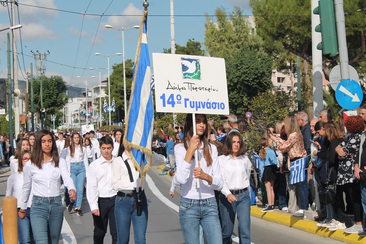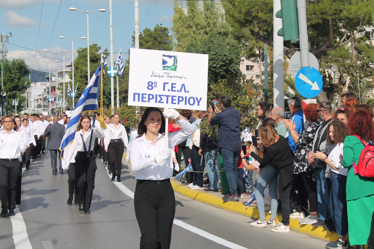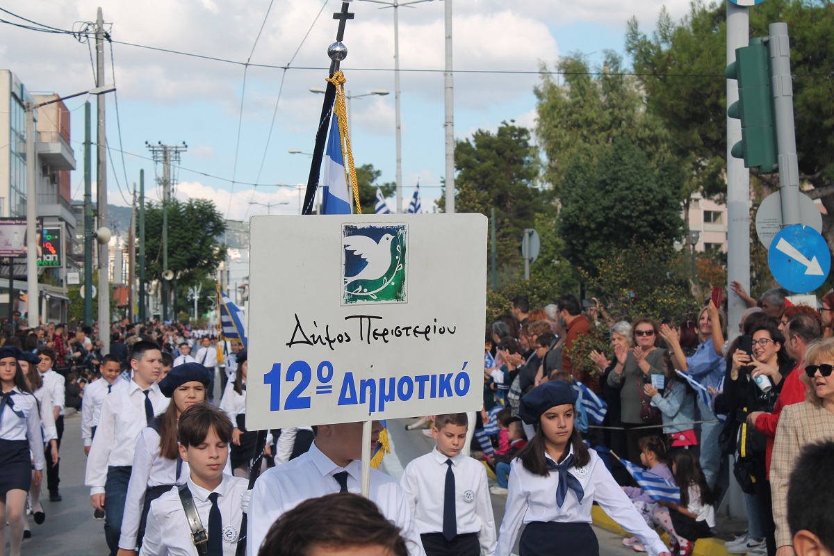 Με τη συμμετοχή εκατοντάδων παιδιών από σχολεία, συλλόγους και φορείς του Περιστερίου πραγματοποιήθηκε το πρωί η επετειακή παρέλαση της 28ης Οκτωβρίου.
