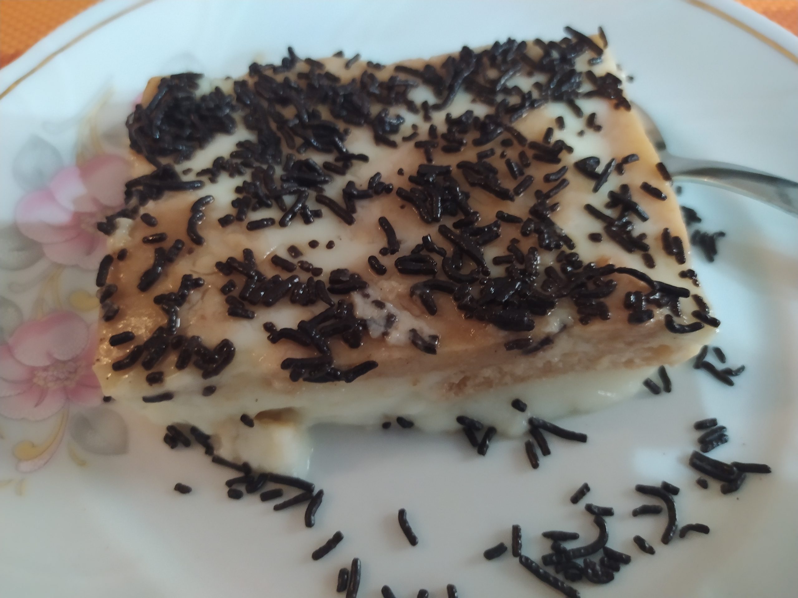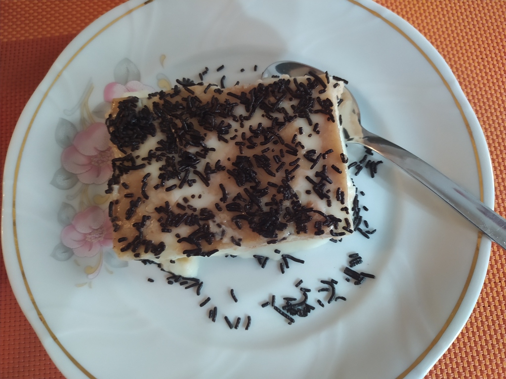 – Όταν παγώσει και σταθεροποιηθεί το γλυκό μας ρίχνουμε την τριμμένη κουβερτούρα