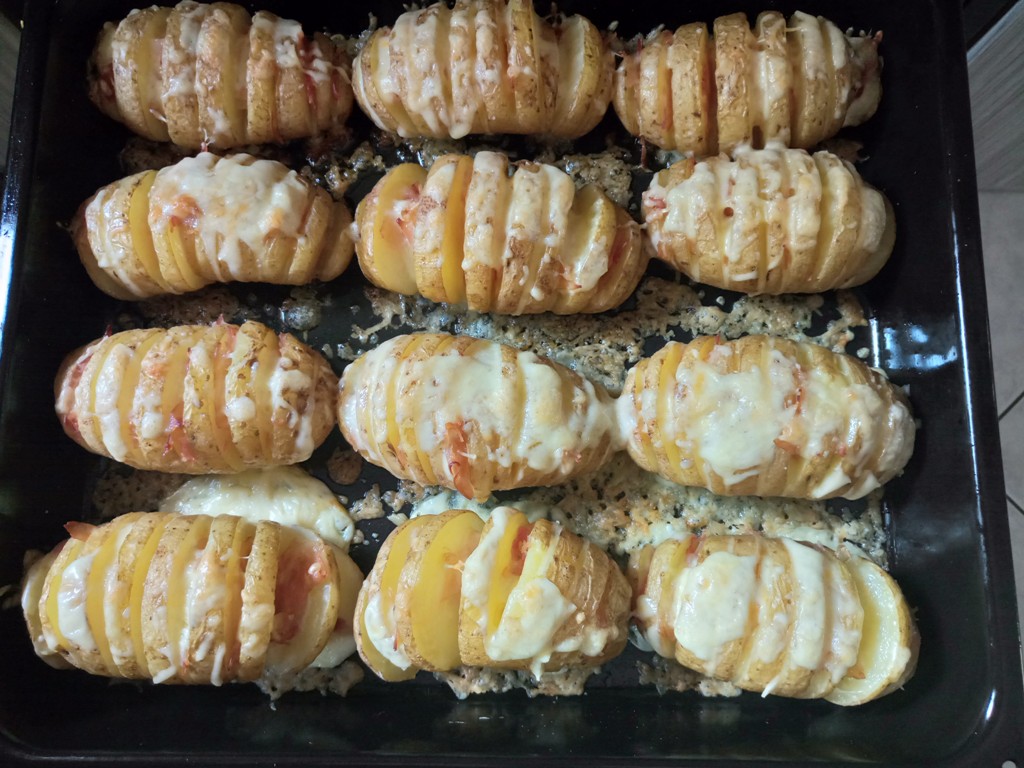 – Αφού έχουμε γεμίσει το εσωτερικό της κάθε πατάτας, τις βάζουμε και πάλι στο φούρνο και ψήνουμε για 20 λεπτά.