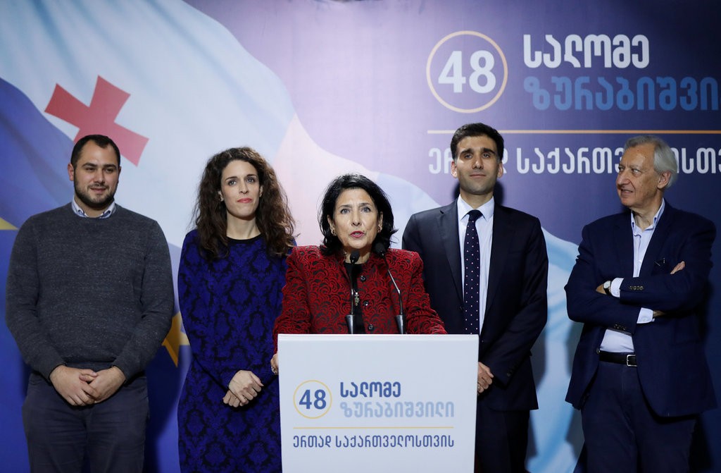 Η Ζουραμπισβίλι ήταν ανεξάρτητη υποψήφια, αλλά υποστηρίχθηκε από το κυβερνών κόμμα Γεωργιανό Όνειρο, το οποίο θέλει η χώρα να διατηρήσει στενούς δεσμούς τόσο με τη Ρωσία, όσο και με την Ευρωπαϊκή Ένωση, ενώ ο αντίπαλός της και η συμμαχία της αντιπολίτευσης η Ισχύς εν τη Ενώσει, που τον υποστήριξε, επιδιώκουν την ένταξη το ταχύτερο δυνατόν της Γεωργίας στην Ε.Ε και το NATO.