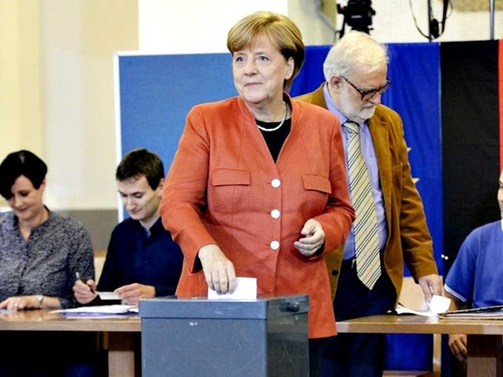 Σύμφωνα με την πρόγνωση εκλογικού αποτελέσματος η Χριστιανική Ένωση (CDU/CSU) λαμβάνει 32,9%, το Σοσιαλδημοκρατικό Κόμμα (SPD) 20,8 %, η Εναλλακτική για την Γερμανία (AfD)13,1 % (βγάζει 90 έδρες στη Βουλή), οι Φιλελεύθεροι (FDP) 10,5%, οι Πράσινοι 8,9% και η Αριστερά 8,9%.