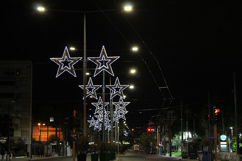 Για μια ακόμη χρονιά ο εορταστικός στολισμός στο Περιστέρι είναι πλούσιος και λαμπερός ειδικά στα πιο κεντρικά σημεία.