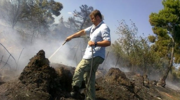 Μόλις, ενημερώθηκε ότι ξέσπασε φωτιά στον Αη Γιάννη Στυλίδας έσπευσε με τη μηχανή του, στην περιοχή και κάλεσε ταυτόχρονα υδροφόρες και μηχανήματα του δήμου.