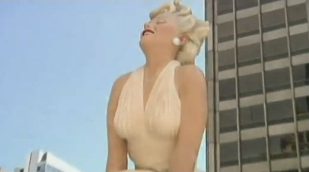 Το άγαλμα απεικονίζει τη διάσημη σκηνή από την ταινία “7 χρόνια φαγούρα”, όπου το άσπρο φόρεμα της Marilyn σηκώνεται από τον αέρα και έχει ύψος περίπου 8 μέτρα!
