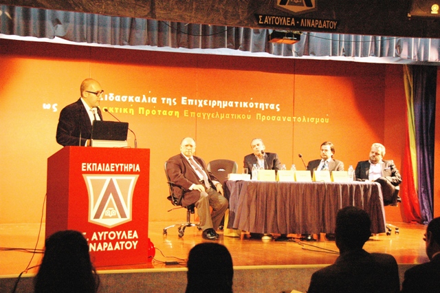 Tην Τετάρτη 14 Νοεμβρίου στο πλαίσιο της Παγκόσμιας Εβδομάδας Επιχειρηματικότητας, τα εκπαιδευτήρια Σ. Αυγουλέα-Λιναρδάτου πραγματοποίησαν υπό την αιγίδα της Ένωσης Οικονομολόγων Εκπαιδευτικών Δευτεροβάθμιας Εκπαίδευσης, ομιλία.