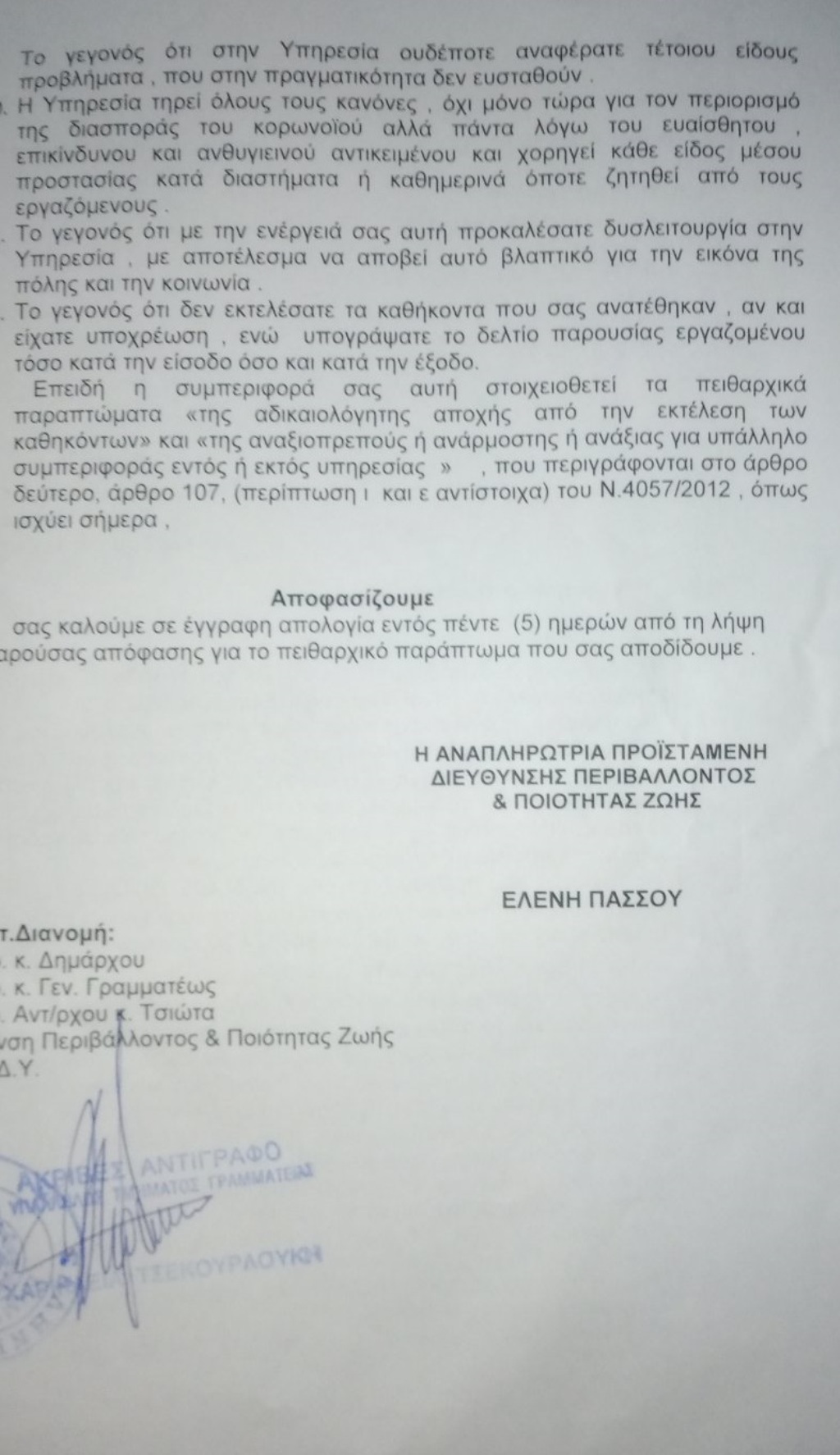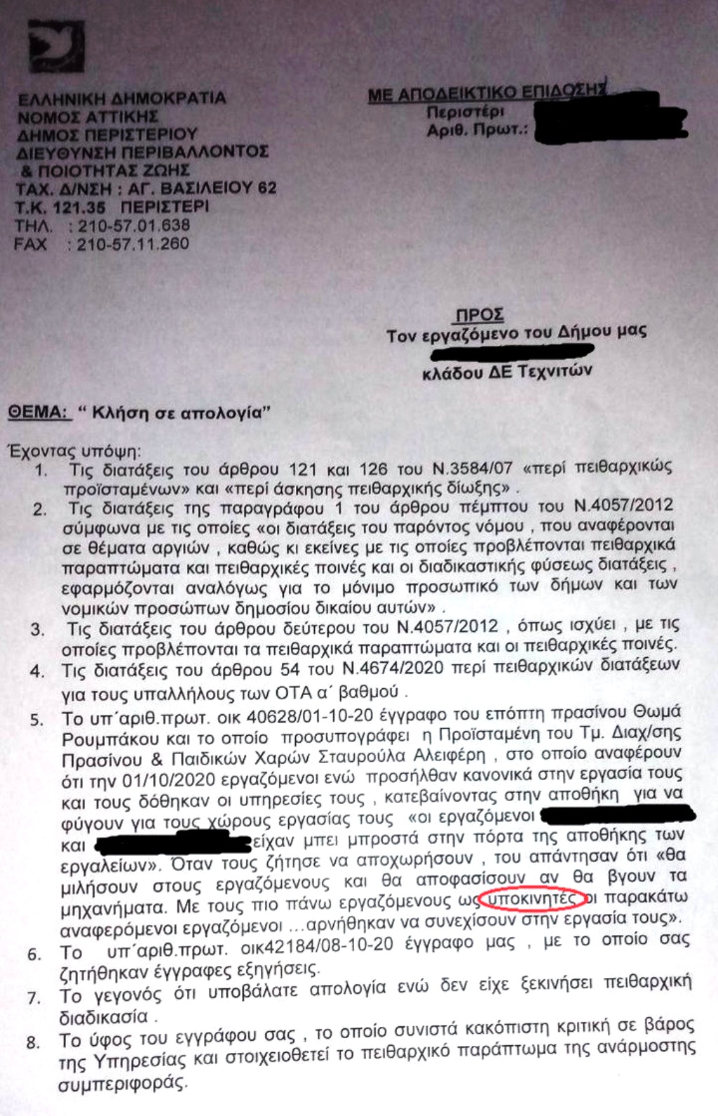 – έβγαλε σε αναφορά και κάλεσε σε απολογία τους εργαζόμενους που συμμετείχαν στην κινητοποίηση για την διεκδίκηση των δικαιωμάτων τους.
