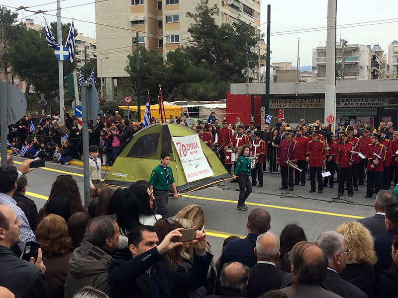 Οι πρόσκοποι έλαβαν μέρος όπως σε κάθε παρέλαση λαμβάνοντας ιδιαίτερη προσοχή από τον κόσμο αφού γιόρτασαν τα 70 χρόνια ύπαρξής τους με τέσσερα παιδιά να παρελαύνουν με μια σκηνή!